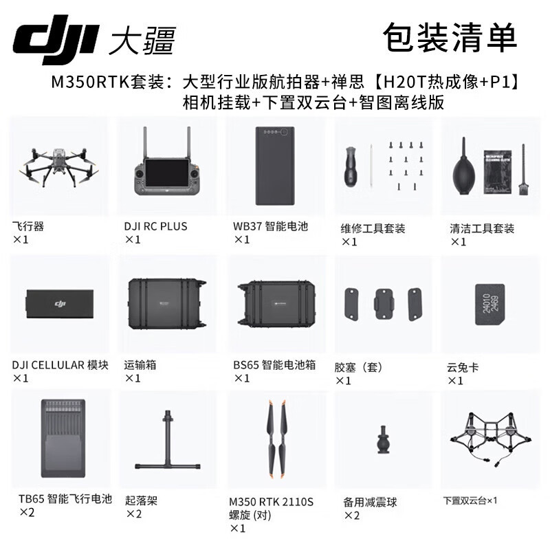 商品名称:大疆 DJI 无人机 M350RTK+禅思H20T+P1相机+下置双云台+智图离线
